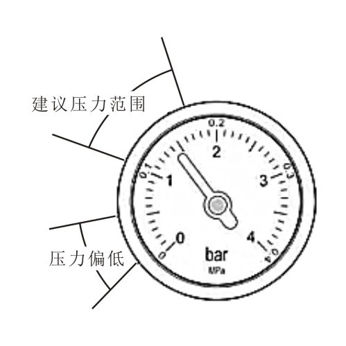 當水壓過高時,壁掛爐我們應該進行泄壓處理。方法:從采暖系統的排水口或者暖氣片或地暖的排氣口把水放掉一部分,將壓力降到1.5bar之后再關閉。