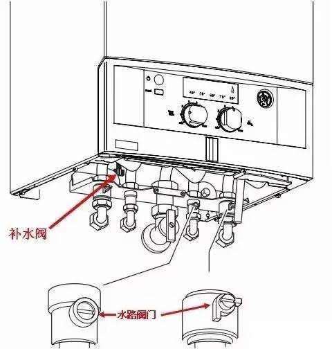 當水壓低于正常值時,會造成衛浴熱水忽冷忽熱,或者無法正常工作報水壓故障。所以我們應該打開壁掛爐底部的補水閥,通過手動注水或者補水,使壁掛爐內的水壓到1.5bar左右,然后關閉補水閥。
