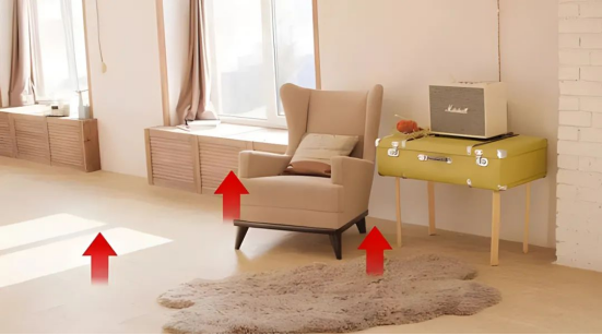 4)地面雜物過多,影響散熱。地暖熱量由下向上傳遞,若家中鋪有地暖或放置有無腿家具都會影響地暖熱量散發。所以建議盡量選用帶腿的家具不要大面積鋪地毯。