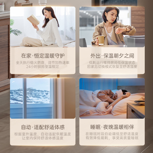 三是一鍵 ECO節能技術,自定義24小時采暖功能滿足用戶的不同采暖個性化需求。比如在家模式可以選擇24小時穩火燃燒,保持室內恒溫狀態;在外模式可以切換為低保溫低耗能狀態,更節能;靈活適應不同場景的采暖需求,每日節省燃氣15%以上,以更高效率實現更低能耗,菲思盾全預混冷凝壁掛爐A9綠色節能貫徹到底。