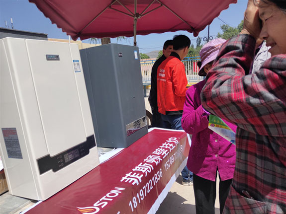 2019年6月3日,正值炎炎夏日,同樣熱火朝天的銷售現(xiàn)場還出現(xiàn)在青海省樂都縣的一個村莊內(nèi)。受國家煤改氣的影響,國家推行農(nóng)村煤改清潔能源的政策,大力推進燃?xì)獗趻鞝t供暖,燃?xì)獗趻鞝t以其能同步兼顧生活熱水與采暖系統(tǒng)的一機二用的亮點,收到很多消費者的青睞。許多農(nóng)村地區(qū)紛紛開始了解和購買燃?xì)獗趻鞝t以響應(yīng)國家綠色環(huán)保的號召。