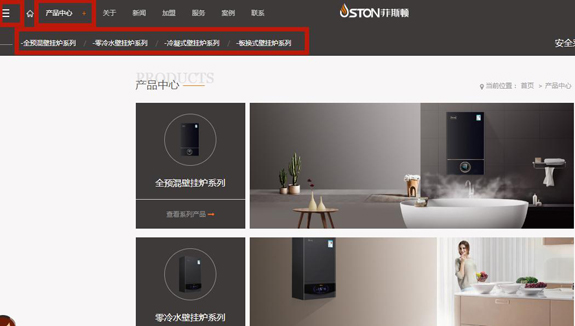 這里有我們菲思盾壁掛爐的各系列產品,我們可以通過這里,查看產品詳情頁,對各系列、型號、功率、配件、功能等進行一個全面的了解。