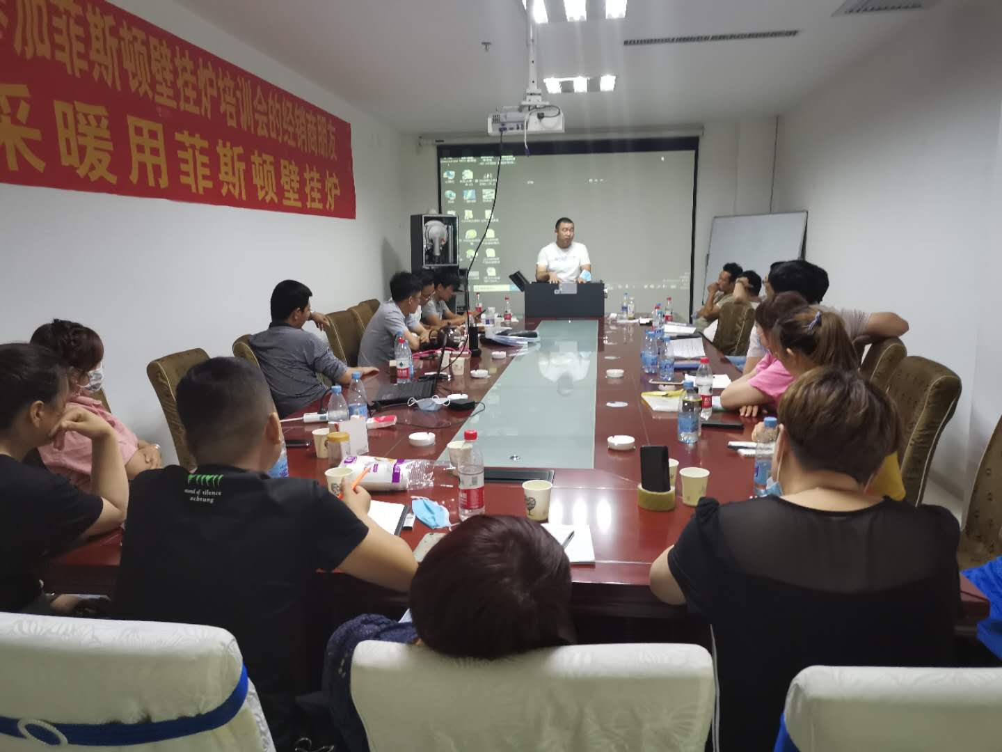 趁著6月份這個非采暖期的壁掛爐過渡季節,廣東菲思盾公司總部特派出營銷總監張清華及總部售后經理岑方生親身前往新疆庫爾勒地區,開展了為期兩天的經銷商市場與技術及售后培訓大會。