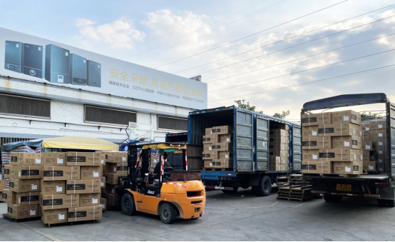 現場一件件貨物整齊劃一的排列在一旁等待裝車,工作人員亦有序安排裝車流程,確保能順利安全地完成發貨工作。