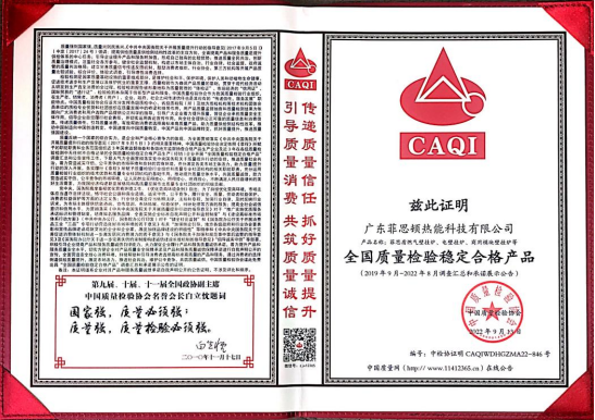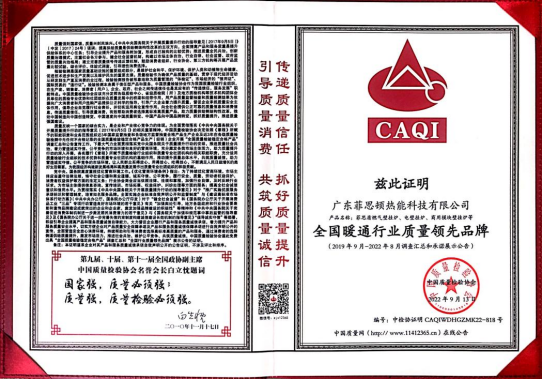近日,在由中國質量檢驗協會舉辦的2022年全國“質量月”質量誠信倡議專題活動中,廣東菲思頓熱能科技有限公司榮獲“全國產品和服務質量誠信品牌”、“全國質量檢驗穩定合格產品”“全國暖通行業質量領先品牌等榮譽稱號