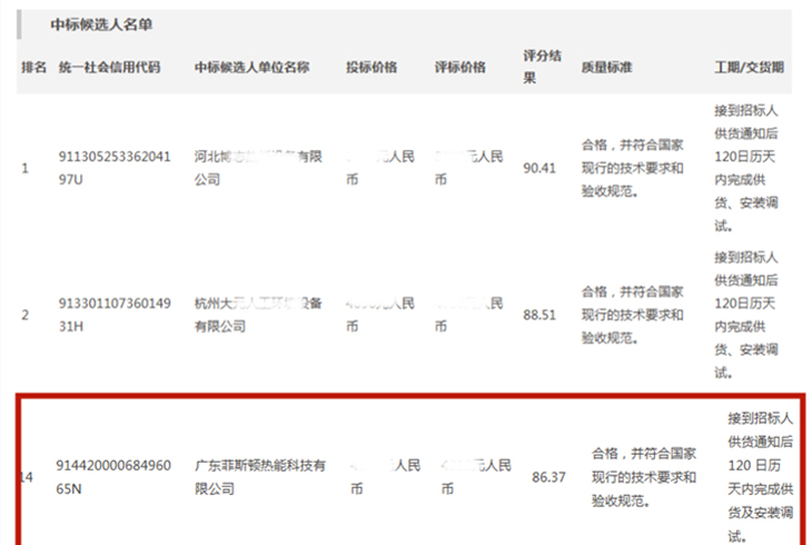 2020年4月3日廣東菲思盾熱能科技有限公司在河北邢臺農村冬季清潔取暖氣代煤工程項目中成功中標,拿下了邢臺市其縣中12...